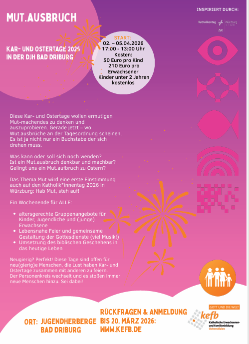 Man kann sich einen Kurs aussuchen oder auch zu beiden Terminangeboten kommen. Eine Anmeldung ist in jedem Fall erforderlich. Beide Kurse finden im großen Meditationsraum des Pankratiushauses in Anröchte, Piepergasse 3 statt.
